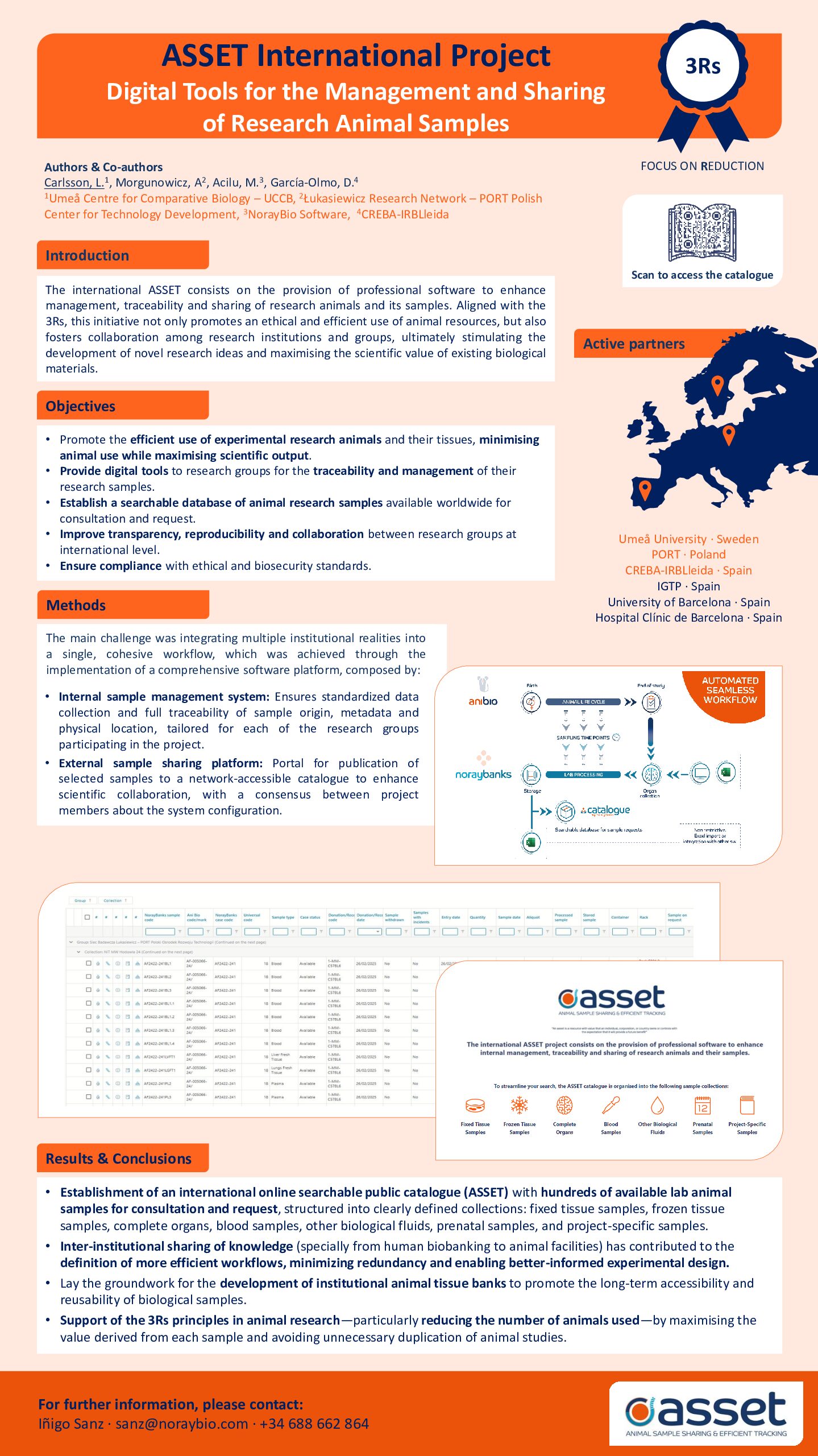 El proyecto internacional ASSET consiste en el suministro de software profesional para mejorar la gestión interna, la trazabilidad y el intercambio de animales de investigación y sus muestras.